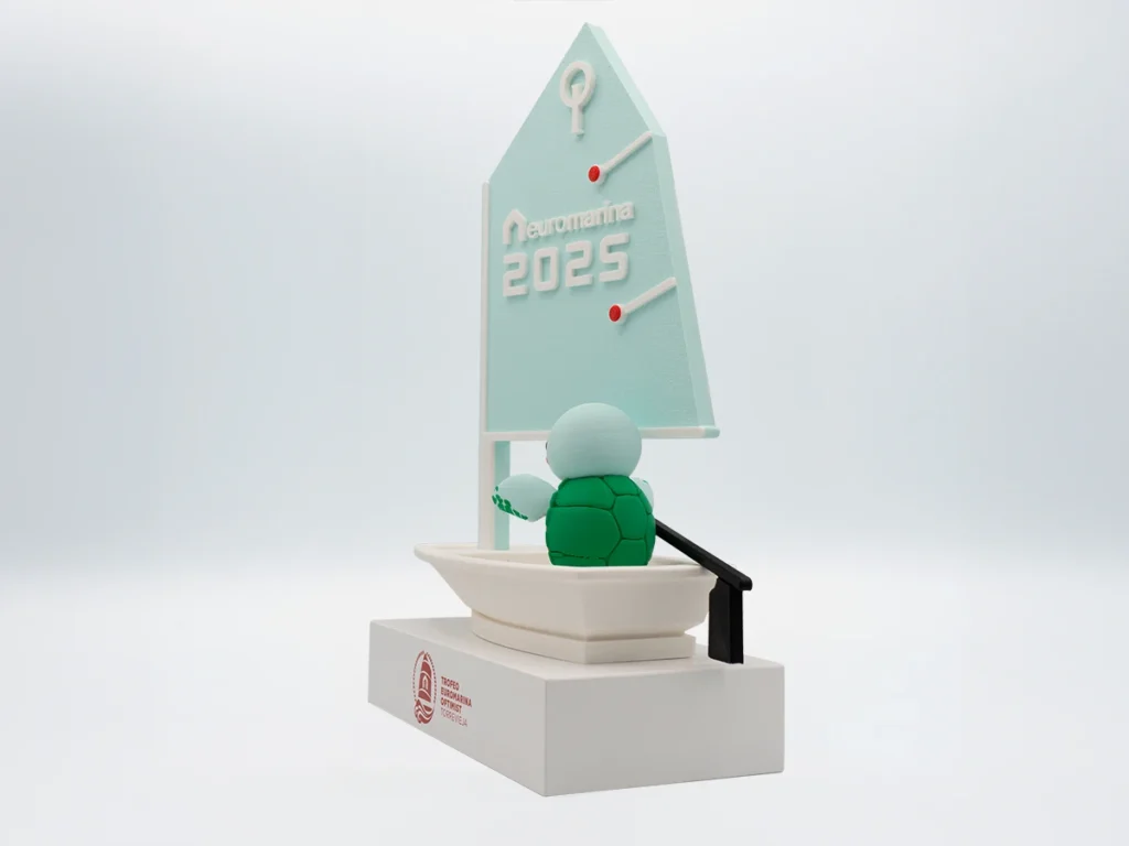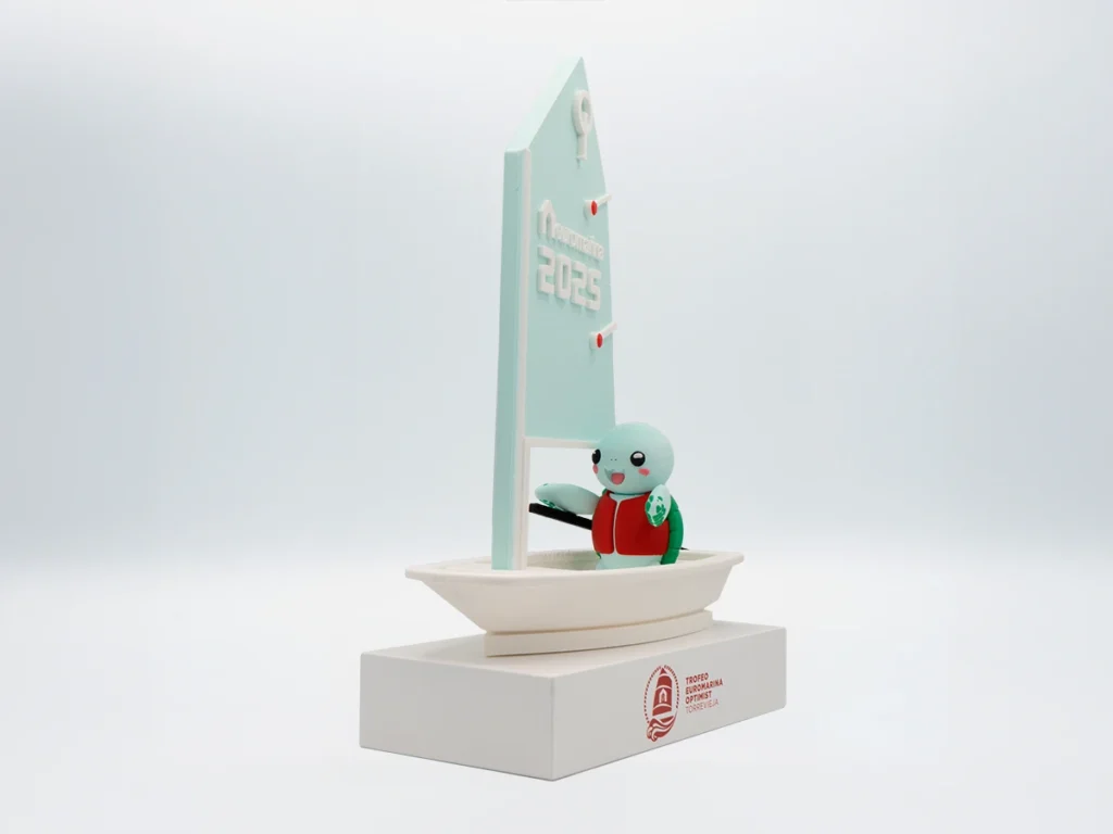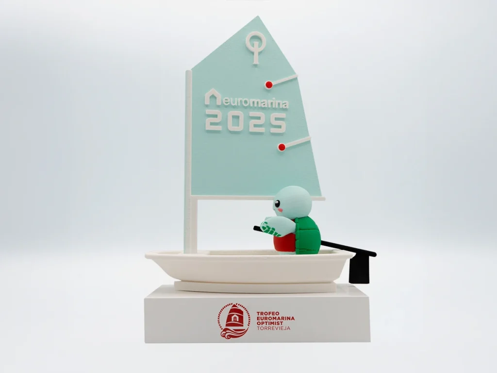 En Mi Pequeña Fábrica, cada trofeo es una pieza especial que representa la esencia del evento. Para la Torrevieja Euromarina Optimist 2025, diseñamos un trofeo único en impresión 3D que captura el espíritu de la vela.