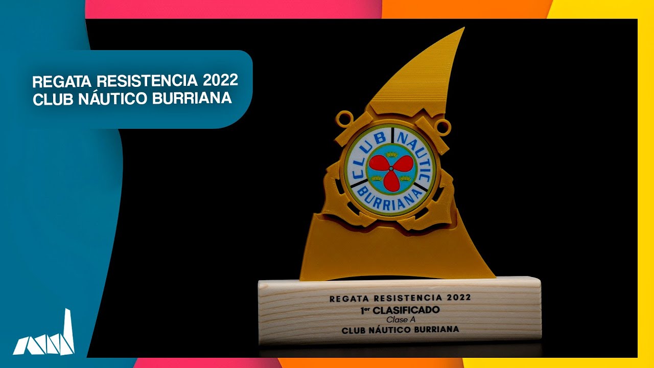 El trofeo de vela 1º Clasificado Regata Resistencia Club Naútico Burriana 2022, diseñado y creado por Mi Pequeña Fábrica con impresión 3D y personalizado, es un trofeo personalizado impresionante que demuestra nuestra habilidad y compromiso con la calidad y la innovación.