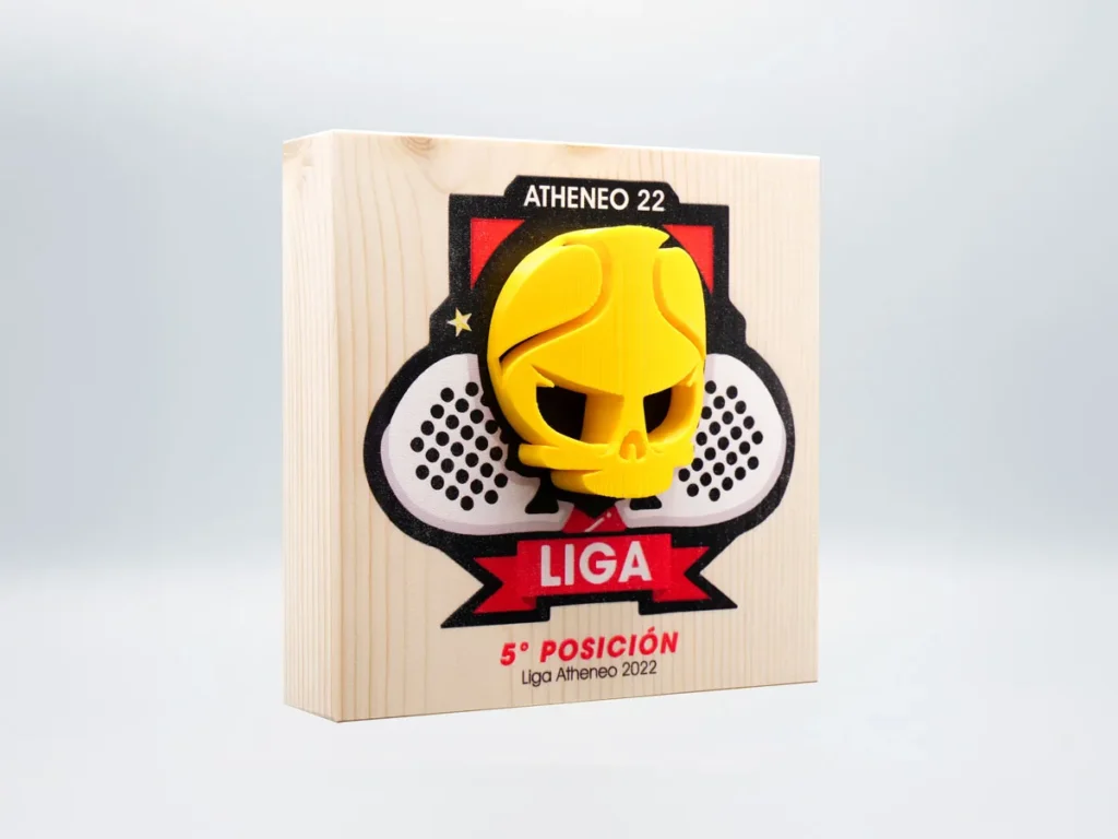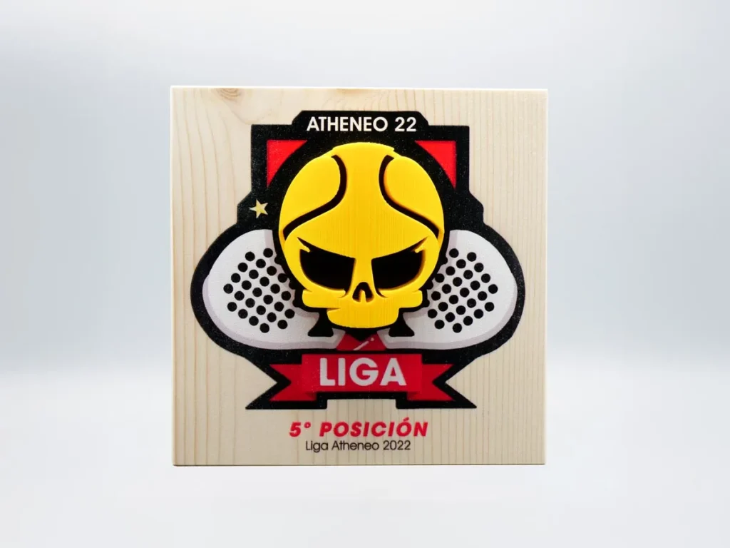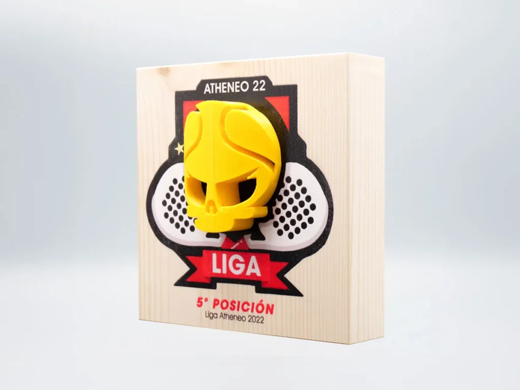La originalidad y la calidad son las claves del trofeo de pádel 5º Posición Liga Atheneo 2022 de Mi Pequeña Fabrica, un trofeo personalizado que celebra los logros y la excelencia.