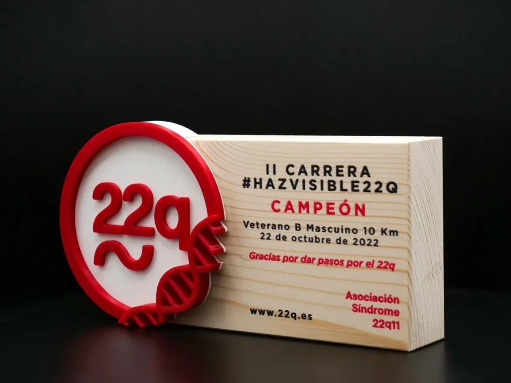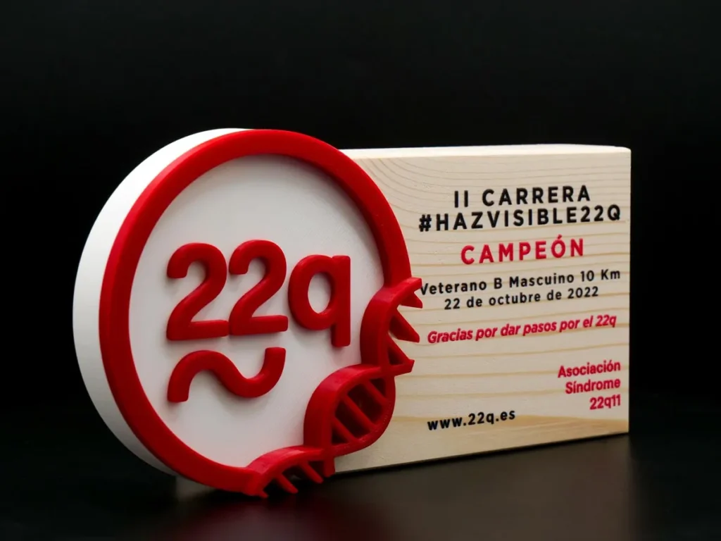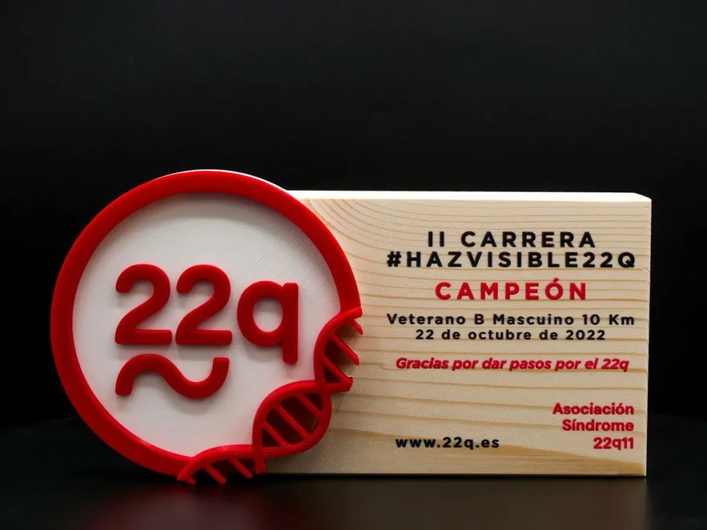 El trofeo de trail Campeón II Carrera HazVisible22Q Asociación Síndrome 2022 es uno de nuestros trofeos personalizados creados a medida que nos enorgullece haber producido utilizando la tecnología de impresión 3D más avanzada en Mi Pequeña Fábrica.