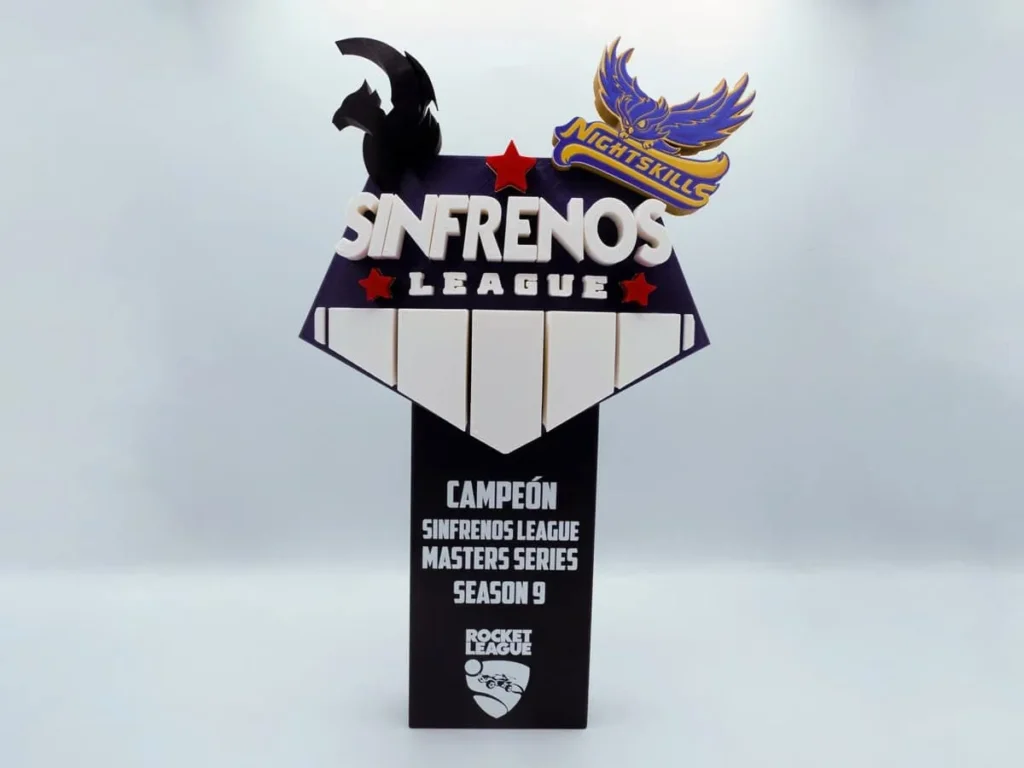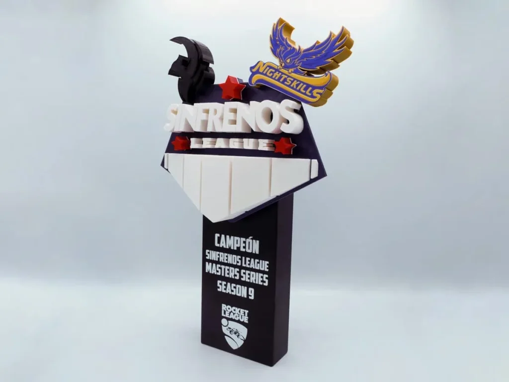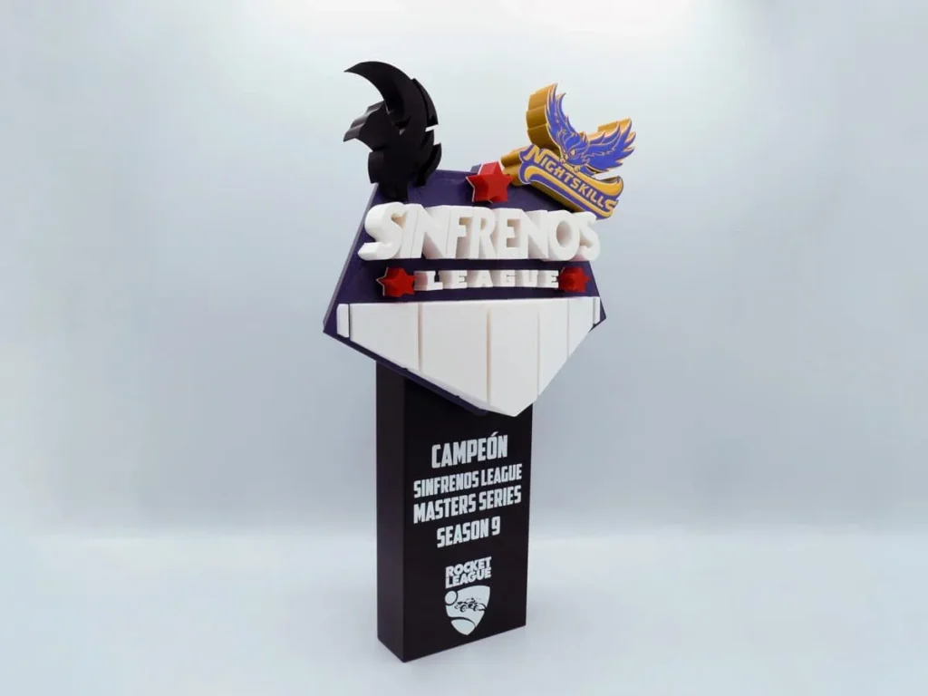 En Mi Pequeña Fábrica nos enorgullece haber creado el impresionante trofeo personalizado Campeón Sinfrenos League Masters Series Season 9 con nuestra avanzada tecnología de impresión 3D y personalización única.