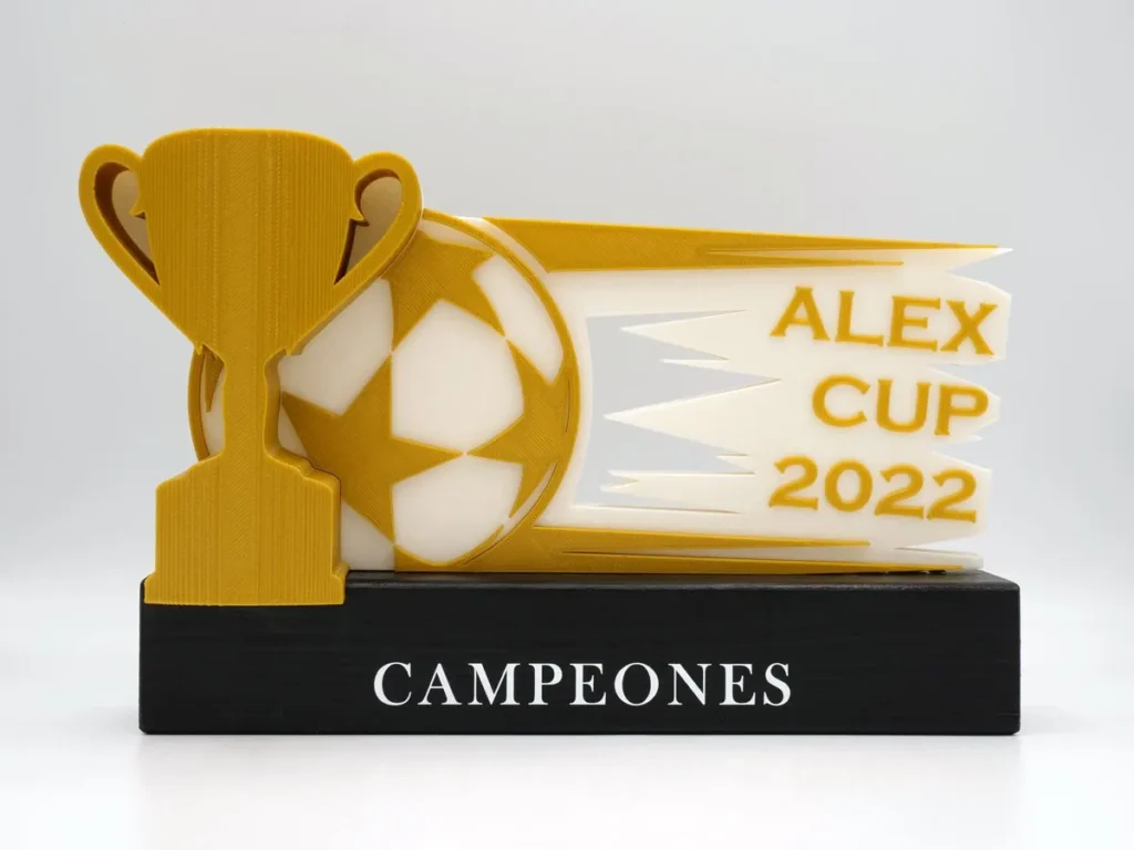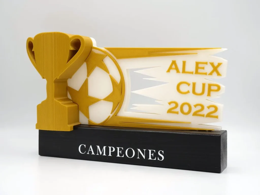 El trofeo de fútbol para los Campeones de la Álex Cup 2022 es una forma especial de honrar el esfuerzo y la dedicación de los ganadores. Diseñado con precisión y fabricado utilizando tecnología de impresión en 3D, este trofeo captura la emoción y la alegría de la victoria en este destacado evento deportivo en Zamora.