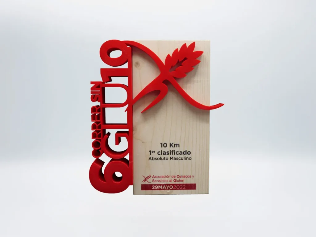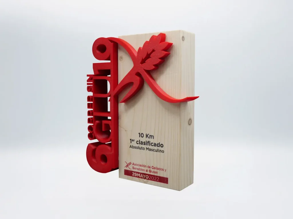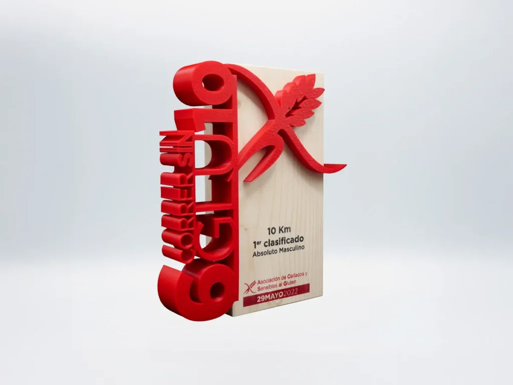 La impresión 3D ha revolucionado la forma en que se crean los trofeos personalizados y en Mi Pequeña Fábrica hemos tomado esta tecnología para crear el impresionante trofeo de atletismo Correr Sin Gluten Asociación de Celíacos y Sensibles al Glutén 2022 personalizado para el cliente más exigente.