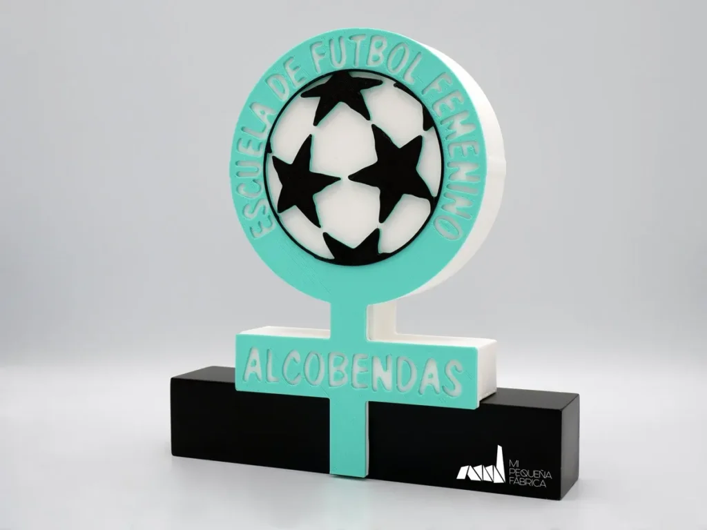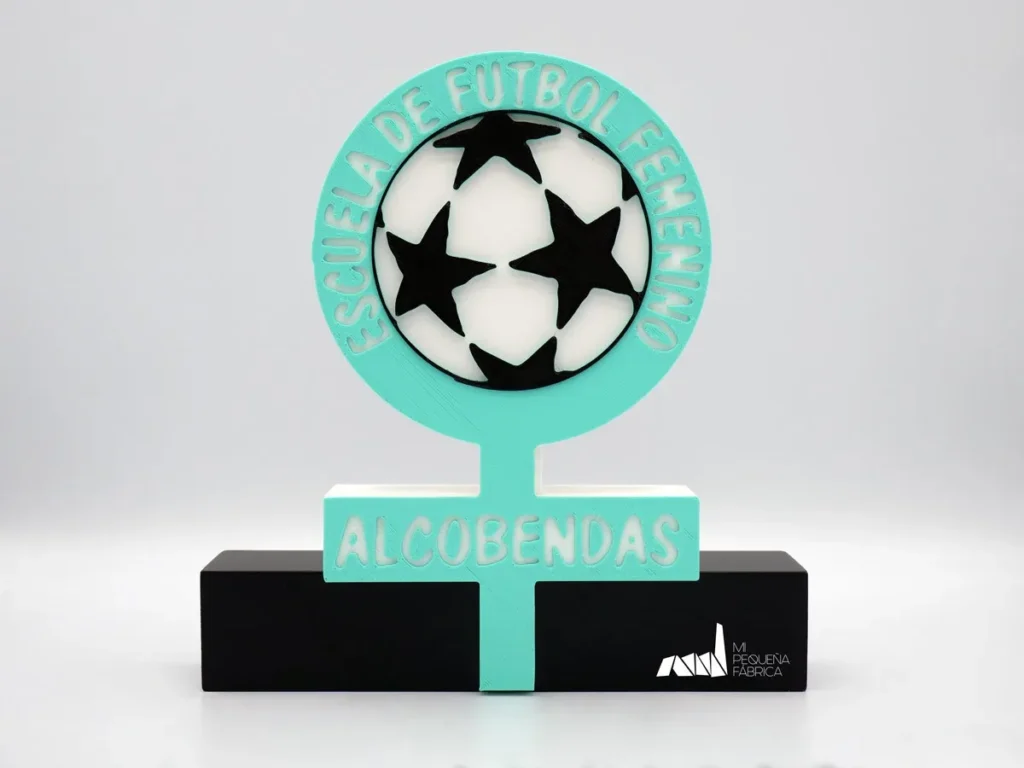 La impresión 3D personalizada de Mi Pequeña Fábrica ha hecho posible la creación del trofeo personalizado Escuela de Fútbol Femenino Alcobendas, un verdadero símbolo de logro y reconocimiento.
