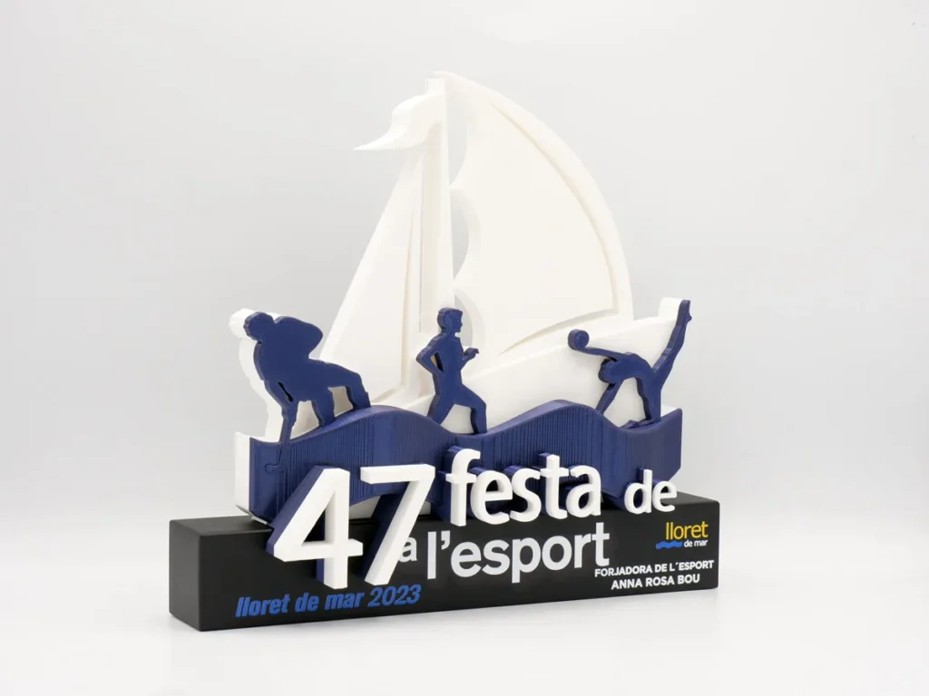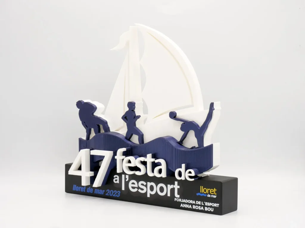 En Mi Pequeña Fábrica somos especialistas en la creación de trofeos personalizados, y el trofeo de taekwondo Forjadora de L´Esport Lloret de Mar 47 Festa de a L´Esport 2023 es un ejemplo de nuestro trabajo excepcional.