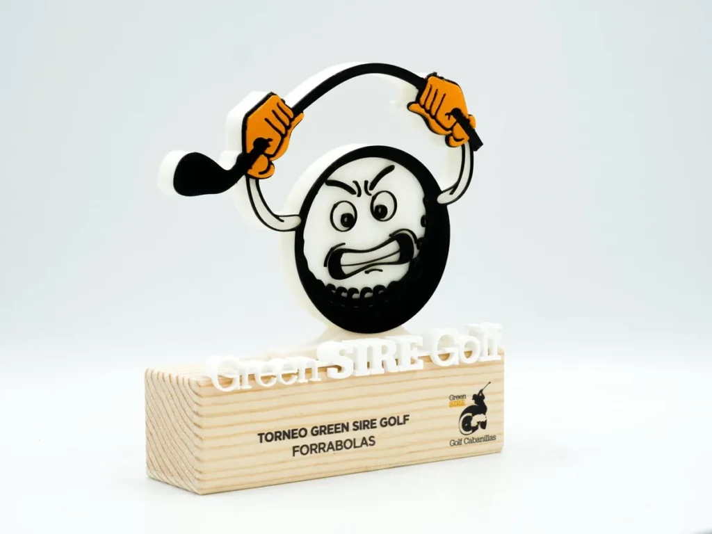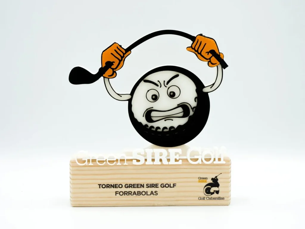 El trofeo de golf Forrebolas Torneo Green Sire Golf Cabanillas es uno de los trofeos personalizados más destacados creados por Mi Pequeña Fábrica. Con nuestra tecnología de impresión 3D, podemos crear trofeos únicos y exclusivos.