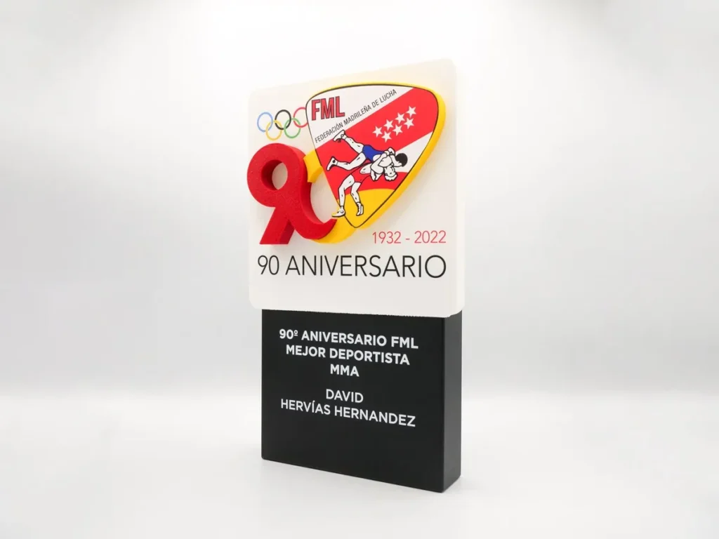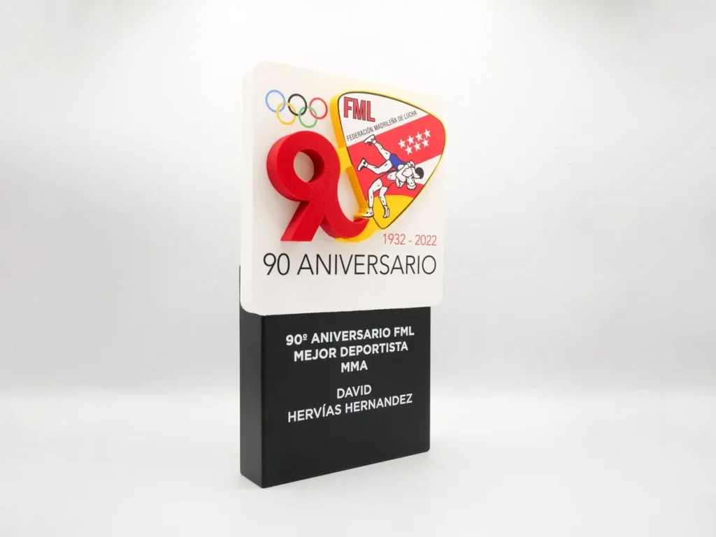 Como expertos en impresión 3D, en Mi Pequeña Fábrica nos sentimos orgullosos de haber creado el trofeo de lucha libre Mejor Deportista MMA 90 Aniversario FML, un trofeo personalizado que refleja la excelencia en cualquier evento.