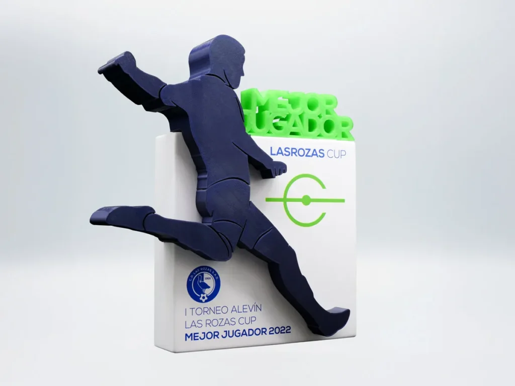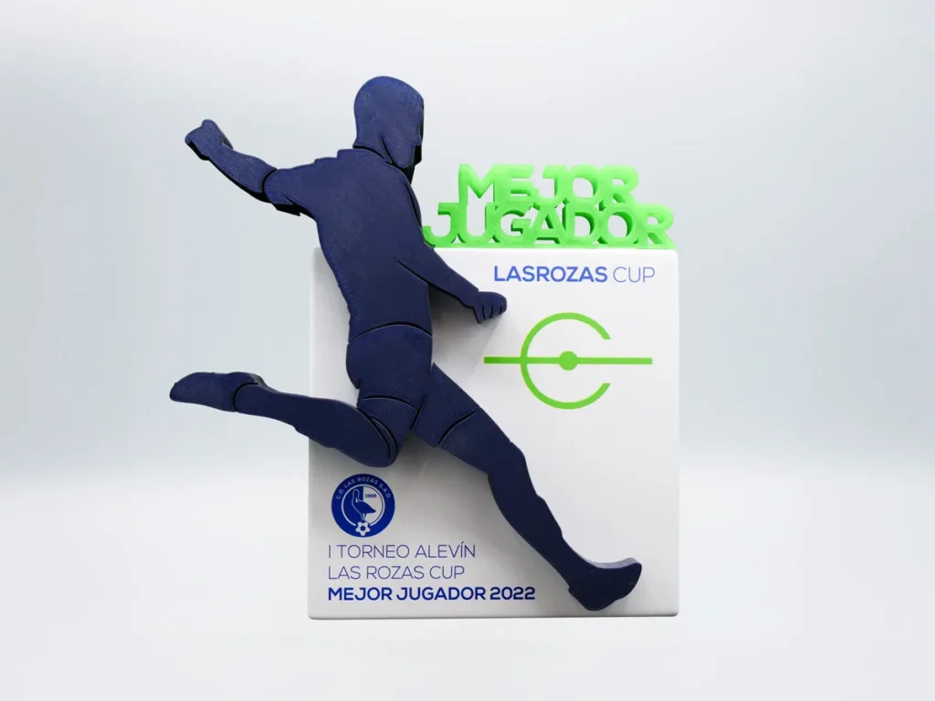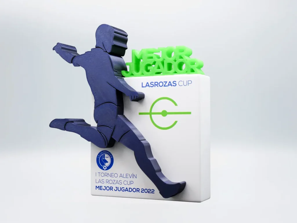 En Mi Pequeña Fábrica, utilizamos la tecnología de impresión 3D para crear el trofeo personalizado Mejor Jugador I Torneo Alevín Las Rozas Cup, que honra a los líderes y expertos en un campo específico.