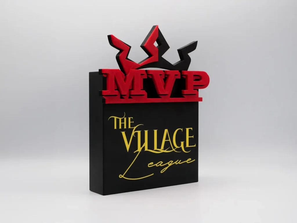 Desde Mi Pequeña Fábrica, nos complace presentar el trofeo personalizado diseñado exclusivamente para el MVP de The Villague league. Este trofeo único y excepcional, elaborado con precisión por nuestro equipo de expertos en impresión 3D, fusiona la innovación tecnológica con la tradición del reconocimiento. El diseño exclusivo y personalizado de este magnífico trofeo resalta los logros sobresalientes del mejor jugador del torneo The Villague League. Cada faceta y detalle meticulosamente trabajados reflejan la dedicación y la excelencia del ganador, capturando la esencia del evento que se llevó a cabo en Madrid.