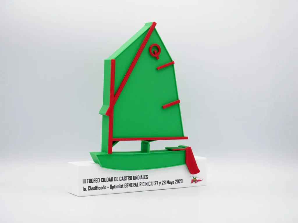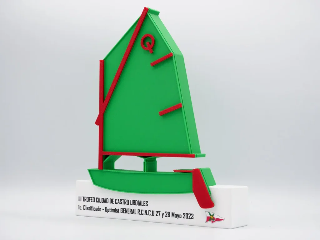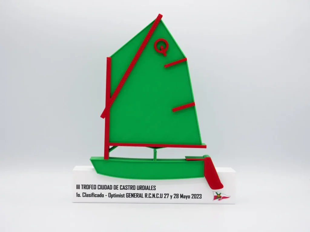 Presentamos el Trofeo Primer Clasificado Optimist General III Trofeo Ciudad de Castro Urdiales, diseñado especialmente para el Tercer Trofeo Ciudad de Castro Urdiales. Este evento se llevará a cabo en Castro Urdiales, Cantabria, y estamos emocionados de formar parte de esta celebración. Nuestro trofeo personalizado captura la esencia de este evento, con un diseño elegante y sofisticado que seguramente impresionará a todos los participantes. En Mi Pequeña Fábrica, nos especializamos en la creación de trofeos personalizados en 3D.