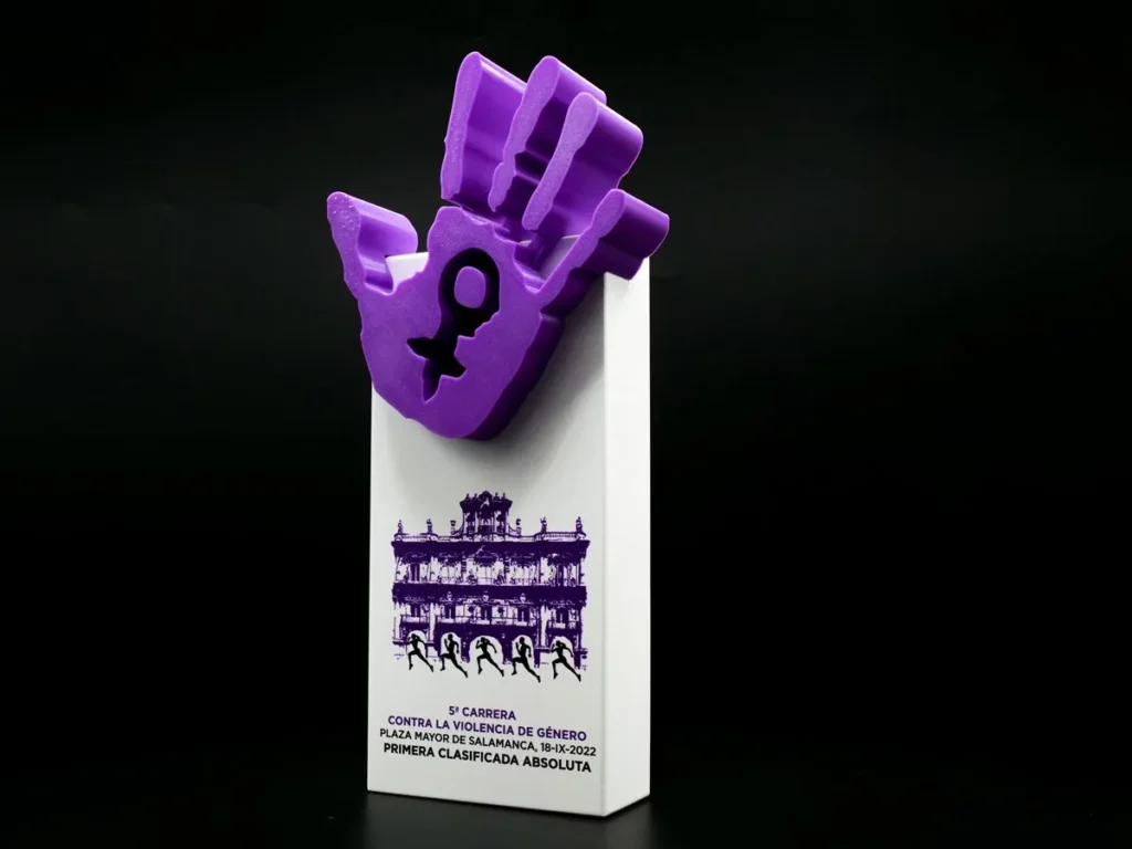 En Mi Pequeña Fabrica nos enorgullecemos de crear trofeos personalizados y únicos como el trofeo de running Primera Clasificada Absoluta 5º Carrera contra la Violencia de Género, utilizando la tecnología de impresión 3D más avanzada.