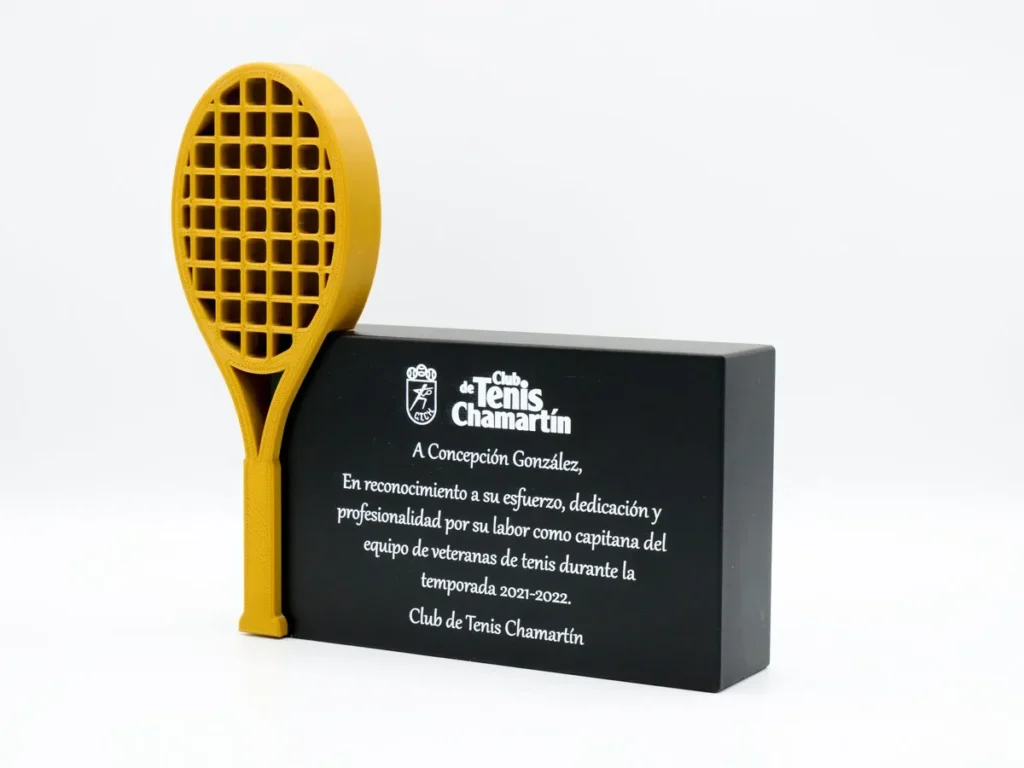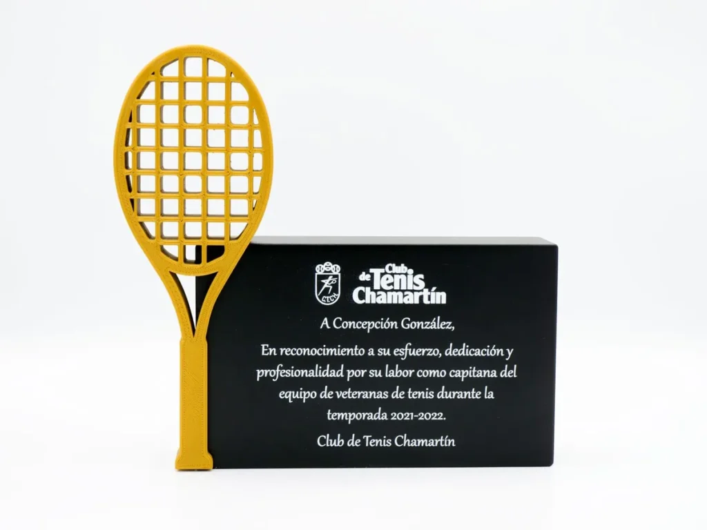 En Mi Pequeña Fábrica nos enorgullece haber creado el trofeo personalizado reconocimiento Club de Tenis Chamartín, un trofeo de tenis que combina elegancia y tecnología gracias a la impresión 3D.