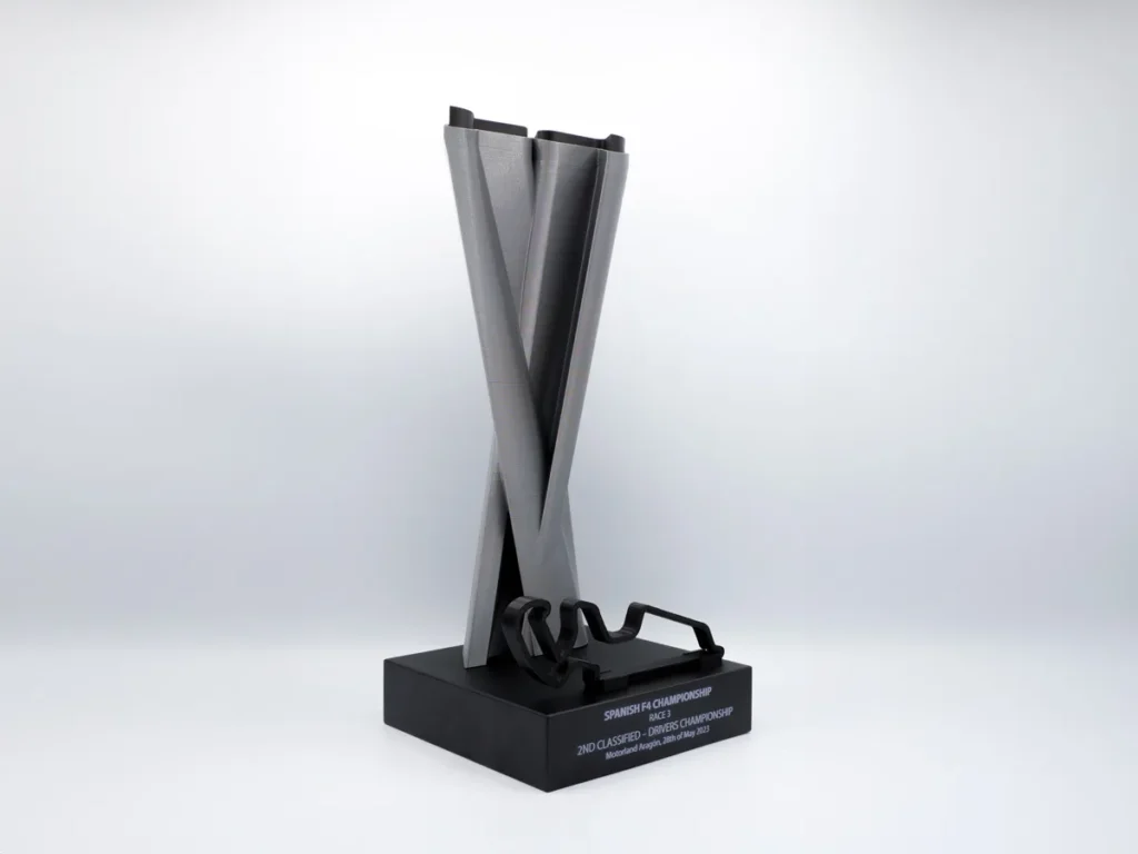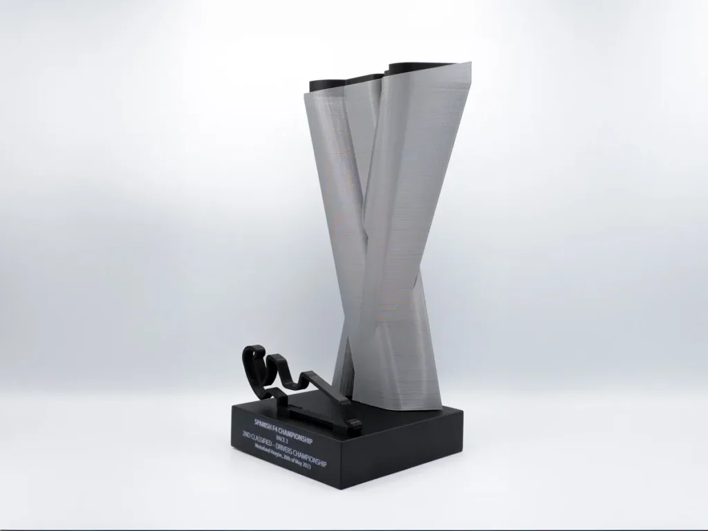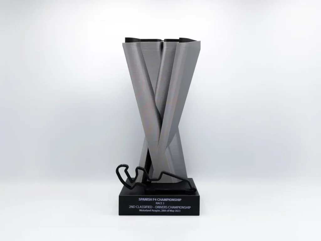 Desde Mi Pequeña Fábrica, nos enorgullece presentar el trofeo personalizado diseñado exclusivamente para el Segundo Clasificado del Campeonato Español de F4 en Motorland Aragón. Este magnífico trofeo refleja la dedicación y excelencia del ganador, encapsulando la esencia del evento que tuvo lugar en la famosa pista de Motorland.