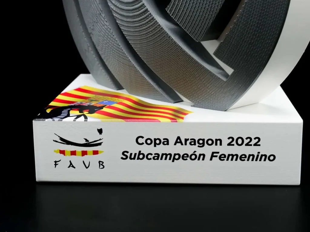 En Mi Pequeña Fábrica, nos enorgullece haber creado el trofeo personalizado Subcampeón Femenino Copa de Aragón 2022, que es una obra de arte moderna diseñada con la tecnología de impresión 3D.