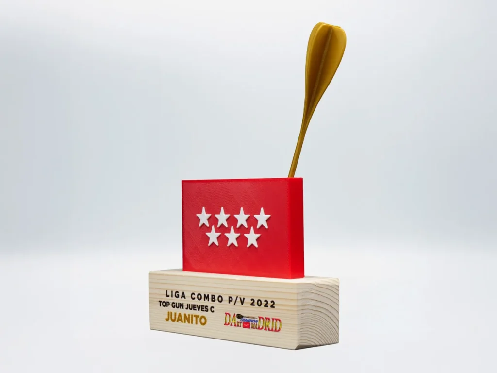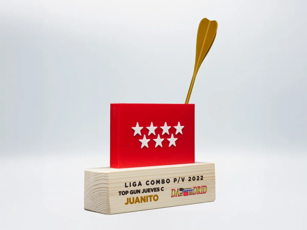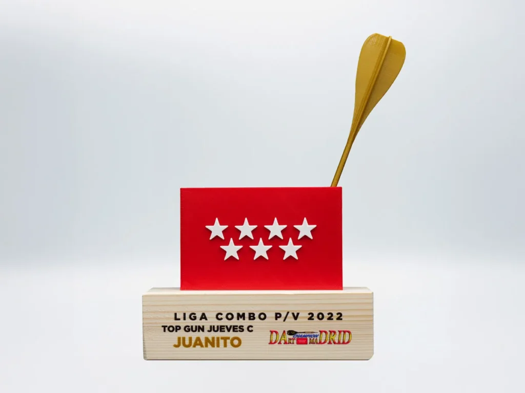 En Mi Pequeña Fábrica creemos que cada trofeo de dardos es único y el trofeo personalizado Top Gun Jueves C Campeón Liga Combo P/V Dart Madrid 2022 es una muestra de nuestra capacidad para crear piezas personalizadas que reflejen la personalidad y el estilo de cada cliente.